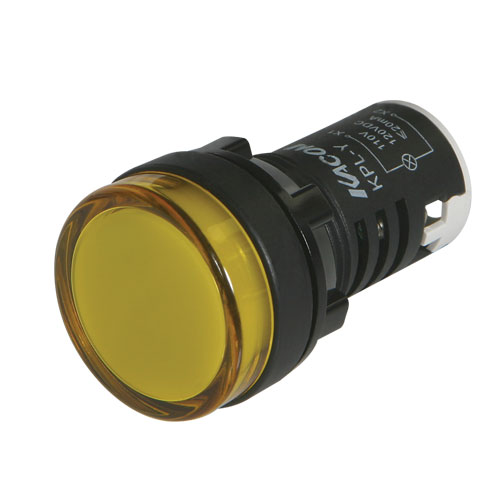 规格种类 KPL-□/() □发光颜色:R,G,Y,B,W; ()额定电压:6V, 12V, 24V, 110V - AC/DC; 220V,380V,440VAC ■ 产品特点 ○ 超高亮纯色LED发光。 ○ 安装直径Φ22/25mm共用。 ○ 防护等级IP65。 ○ 超短体积,规格齐全,电气寿命长。 ○ 经济适用,性价比高。